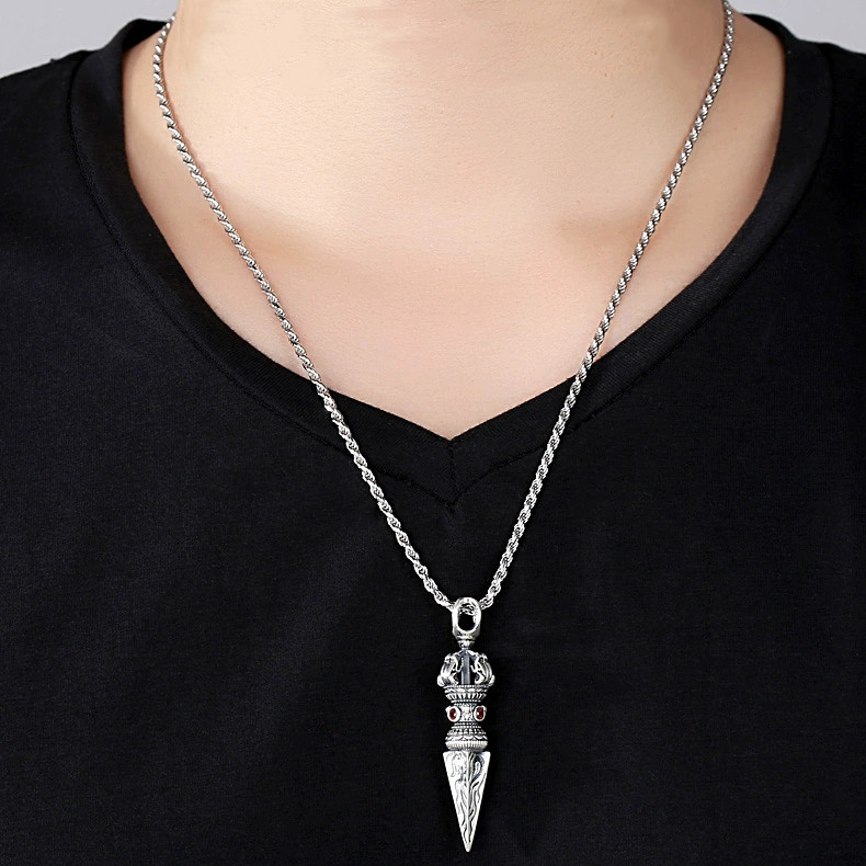 S925 Pure Silver Descending Magic Diamond Pestle Necklace Pendant Hanging Pendant Retro Wind Doing Old Country Tide Men's Personality Fashion Niche-Taobao