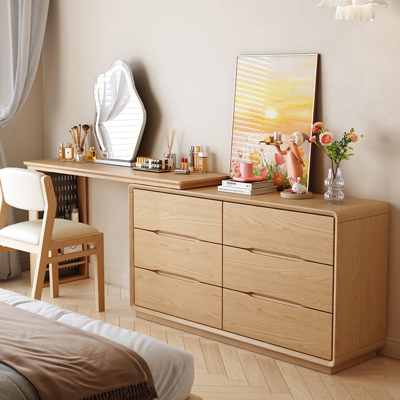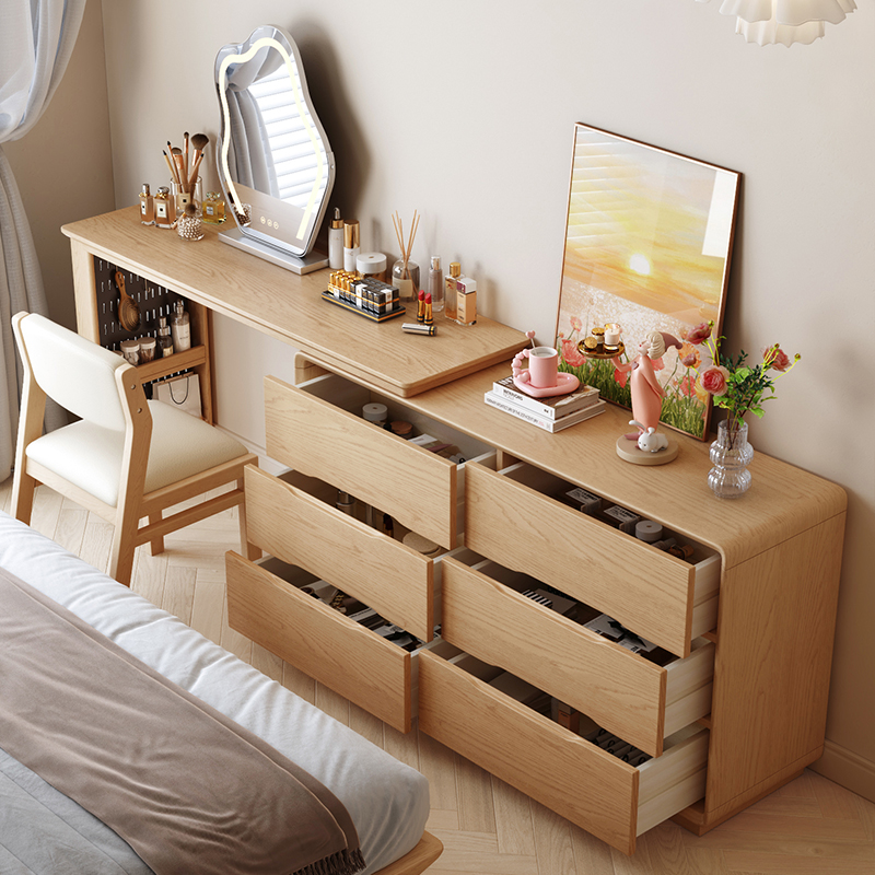 Dresser bucket cabinet integrated bedroom modern simple minimalist full solid wood Makeup Table Tail containing cabinet Log Corner Desk-Taobao