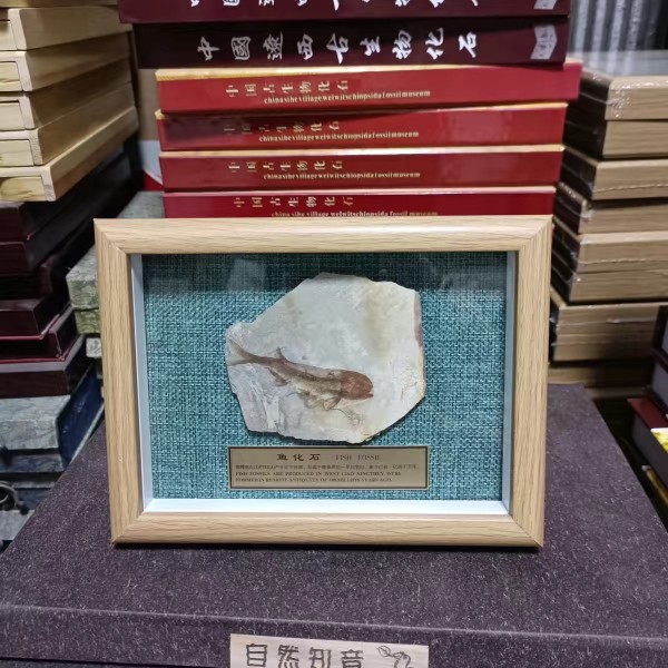 Fish fossil Liao West Chaoyang ancient Biological Wolverine Finishes Fossilized Single Fish Plate Photo Frame Pendulum with Gift Jiaoi-Taobao