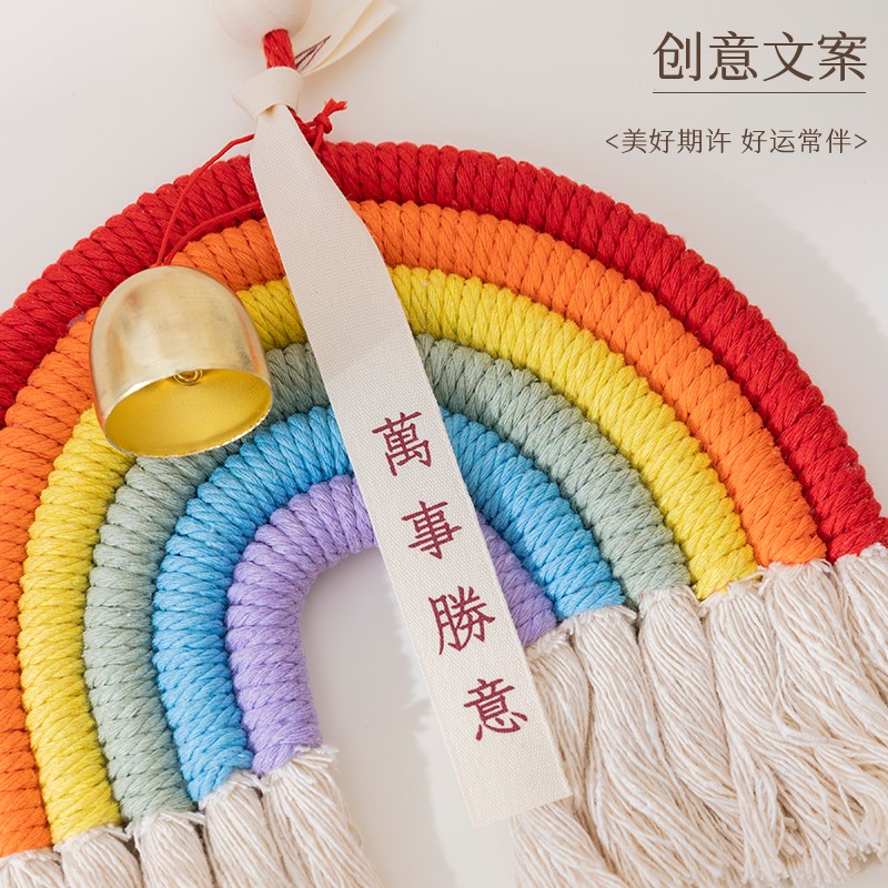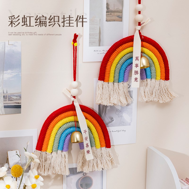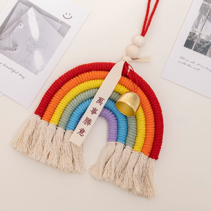ins wind Rainbow bell bell Ping An Happy car hanging decoration creative handwoven gift wall Decorative Pendant-Taobao
