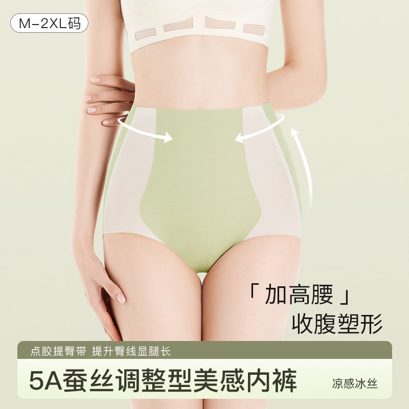 Cat person collection of high waist underpants ladies' ice silk without marks and hip summer thin section body-beam waist vigorously closets belly-Taobao