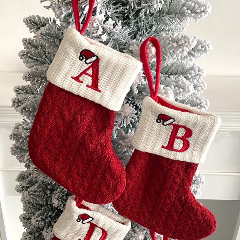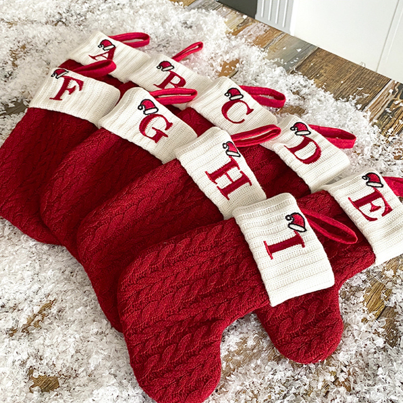 Foreign trade fine red letters Christmas Sox knit wool line Christmas socks letters Sox Christmas pendant gift bags-Taobao