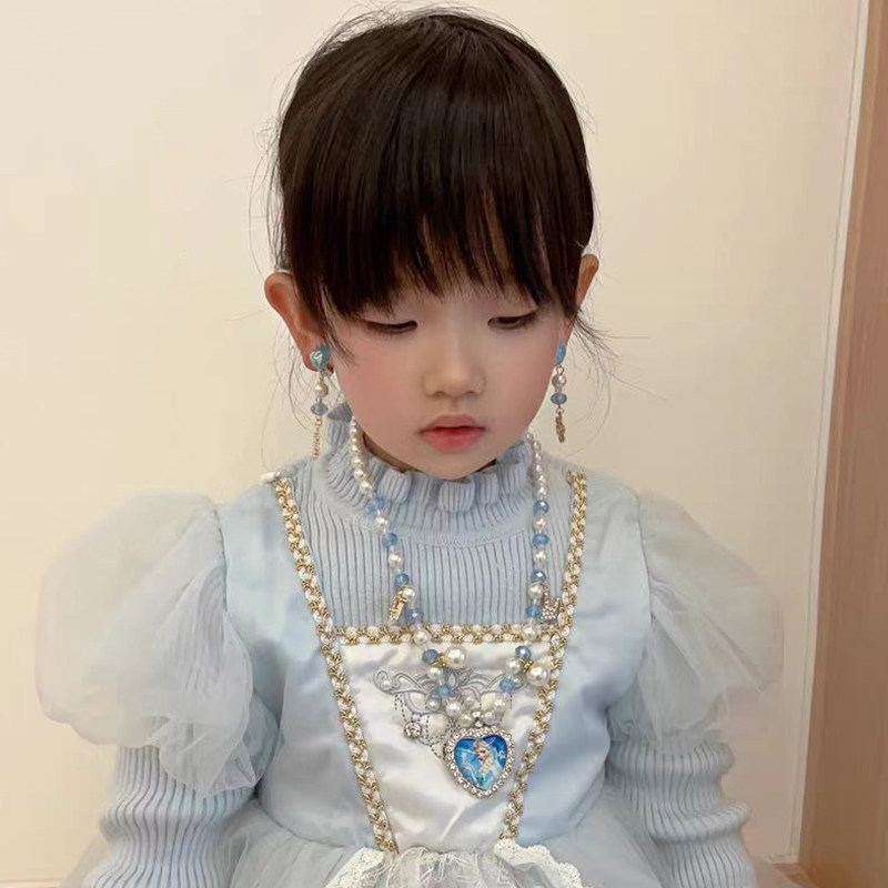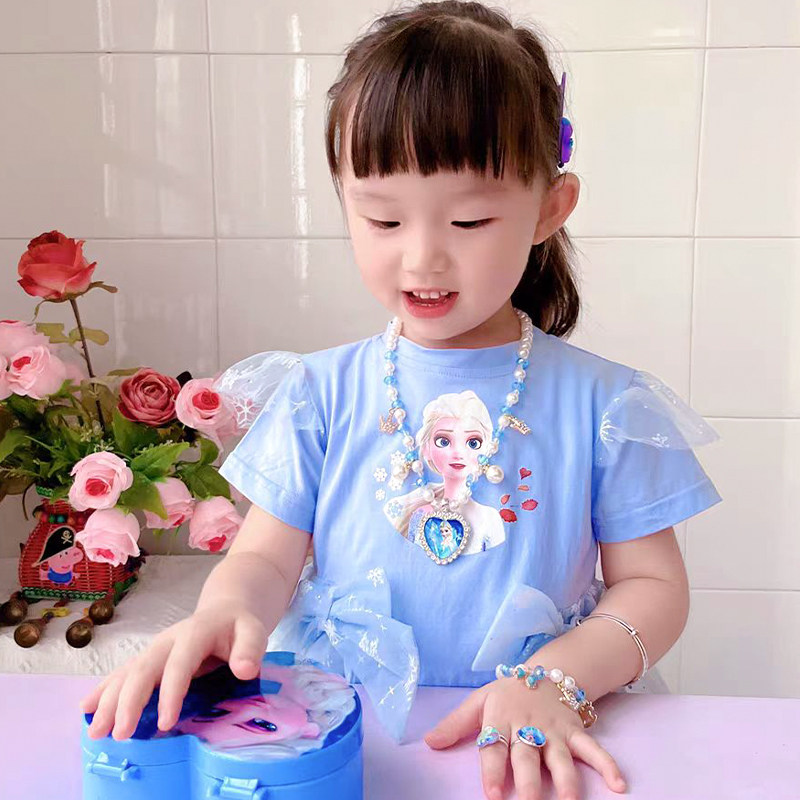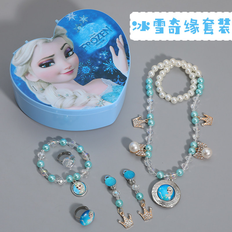 Ice Chic Edge Love Sa Necklace Children Bracelet Earrings Ring Suit Little Princess Girl Jewelry Princess's first decorated box-Taobao