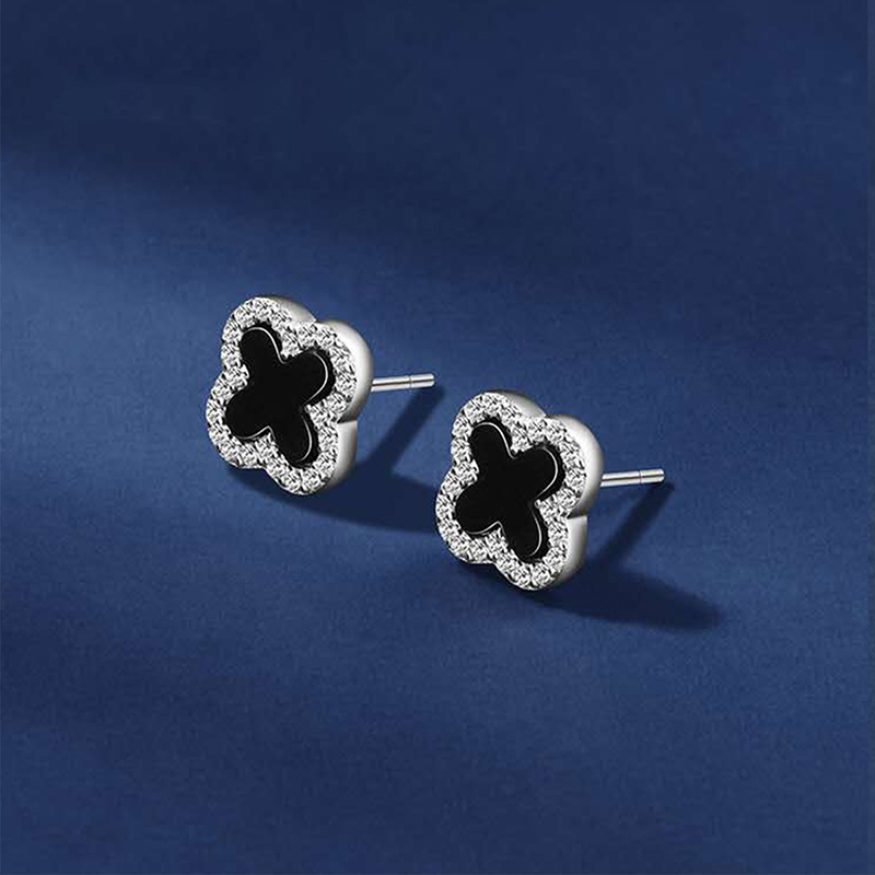 (Self-operated) British DAISY BEAUTY black clover earrings for women, fashionable simple style design earrings
