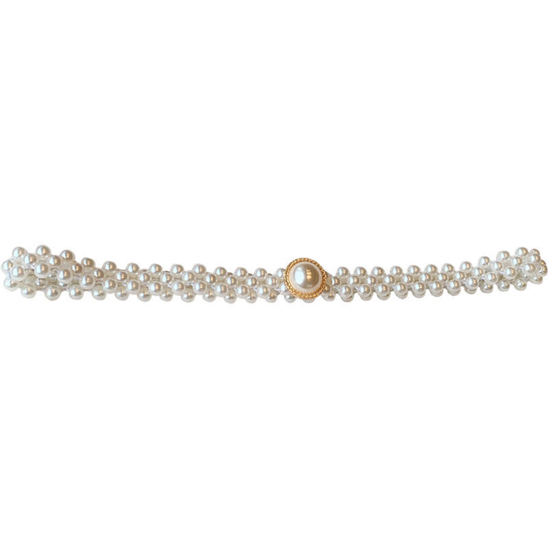 Pearl waist chain lady large pearl inlaid with elastic waist decorative matching skirt slim belt string bead tightness belt lady-Taobao