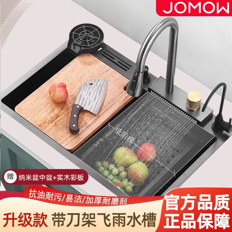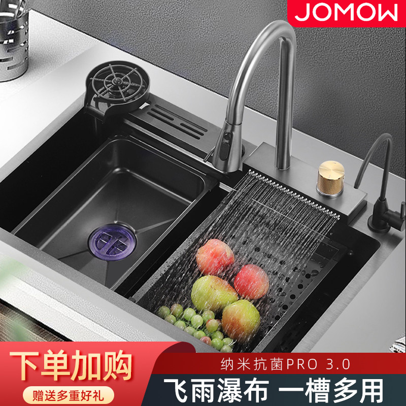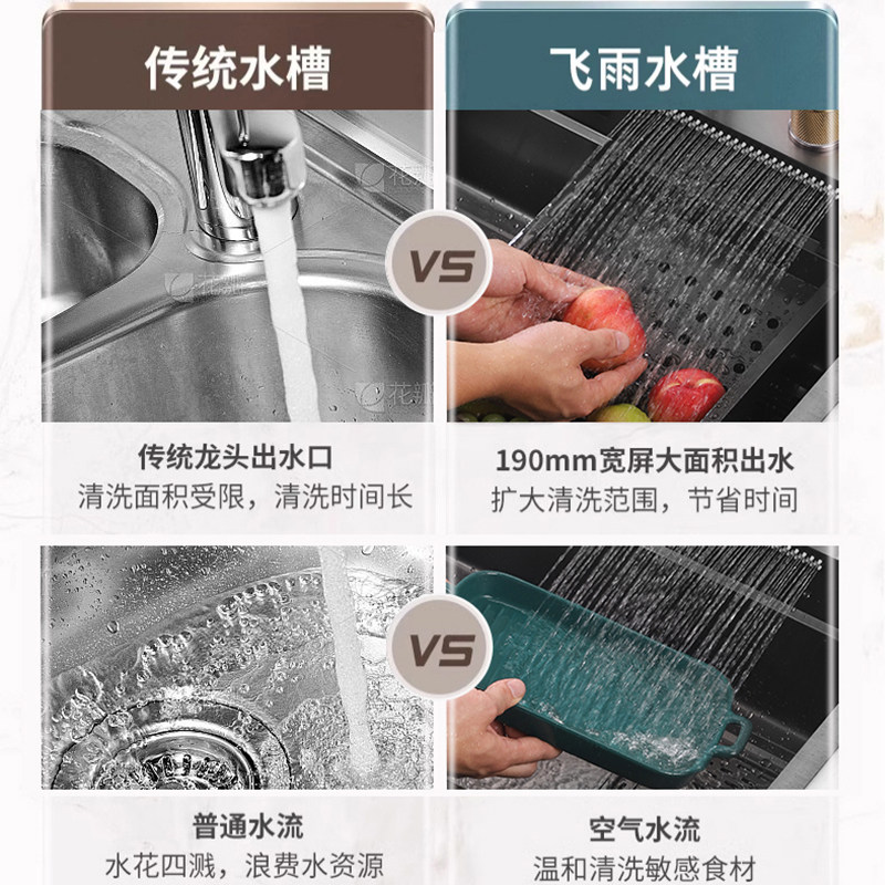 Flying Rain Falls Kitchen Wash Basin 304 Stainless Steel Dishwashing Pool Sink Large Single Tank Home Dishwashing Trough With Tool Holder-Taobao