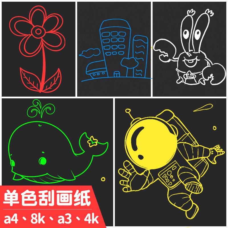 Monochromatic scraped paper Elementary students 8k open children a4 scraping and drawing paper dazzling scraping wax paper black white white bottom pure color-Taobao