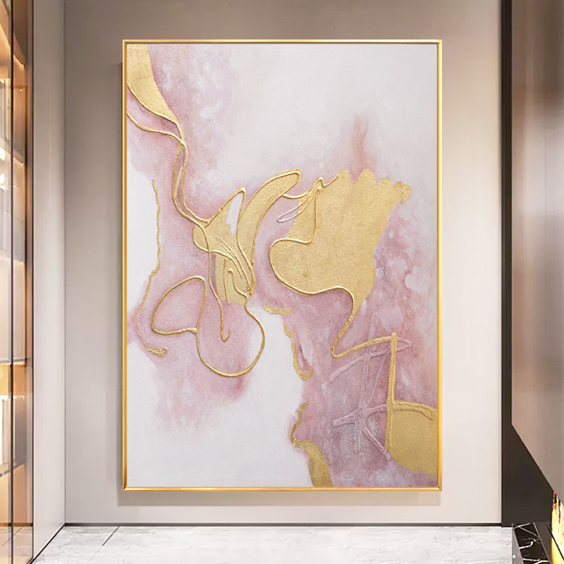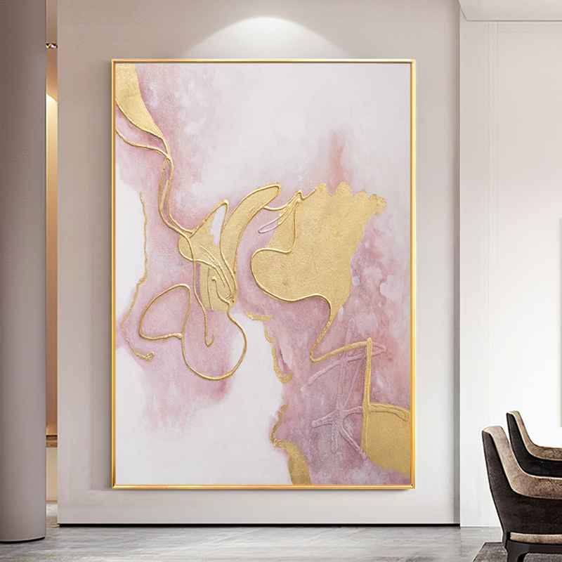 Hand-painted Oil Painting Gold Leaf Pink Abstract Xuanguan Decoration Painting Modern Light Lavish Living Room Sofa Background Wall Custom Hanging Painting-Taobao