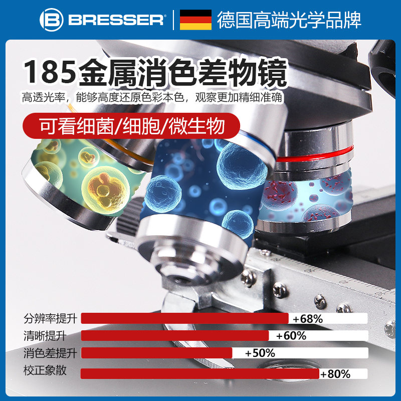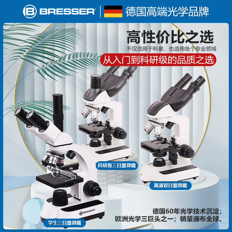 German Treasure de Bresser Professional binocular Microscopy Three-mesh Desktop Microscope Bio-Optics High Definition Students Special Biology Secondary School Science Experiment Watching Bacteria Sperm Mites-Taobao