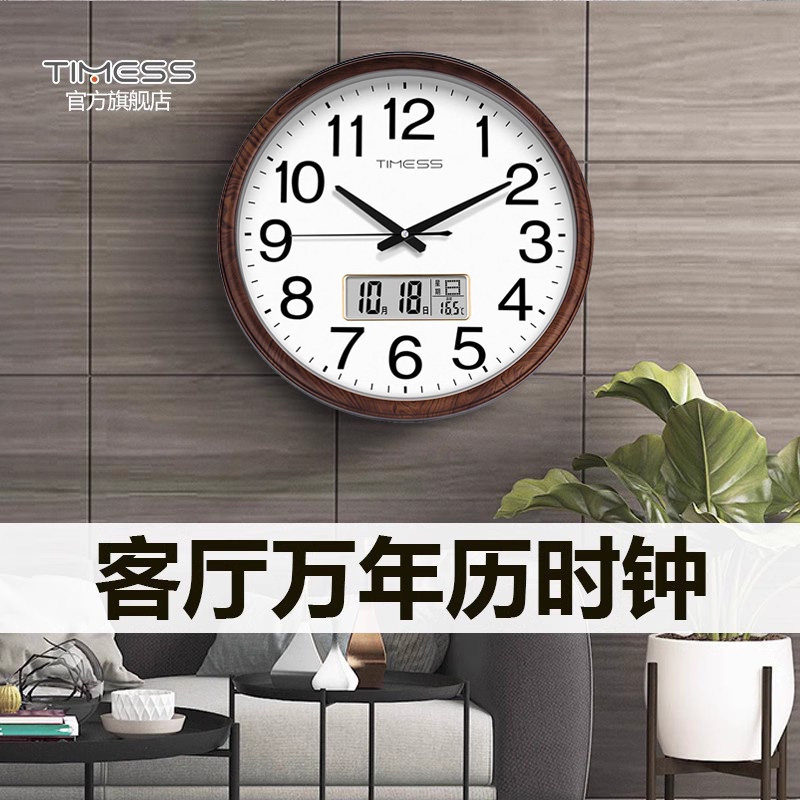 TIMESS CLOCK HANGING CLOCK LIVING ROOM HOME FASHION CALENDAR CLOCK HANGING WALL MUTED ELECTRONIC CLOCK FREE OF PUNCH Perpetual Calendar-Taobao