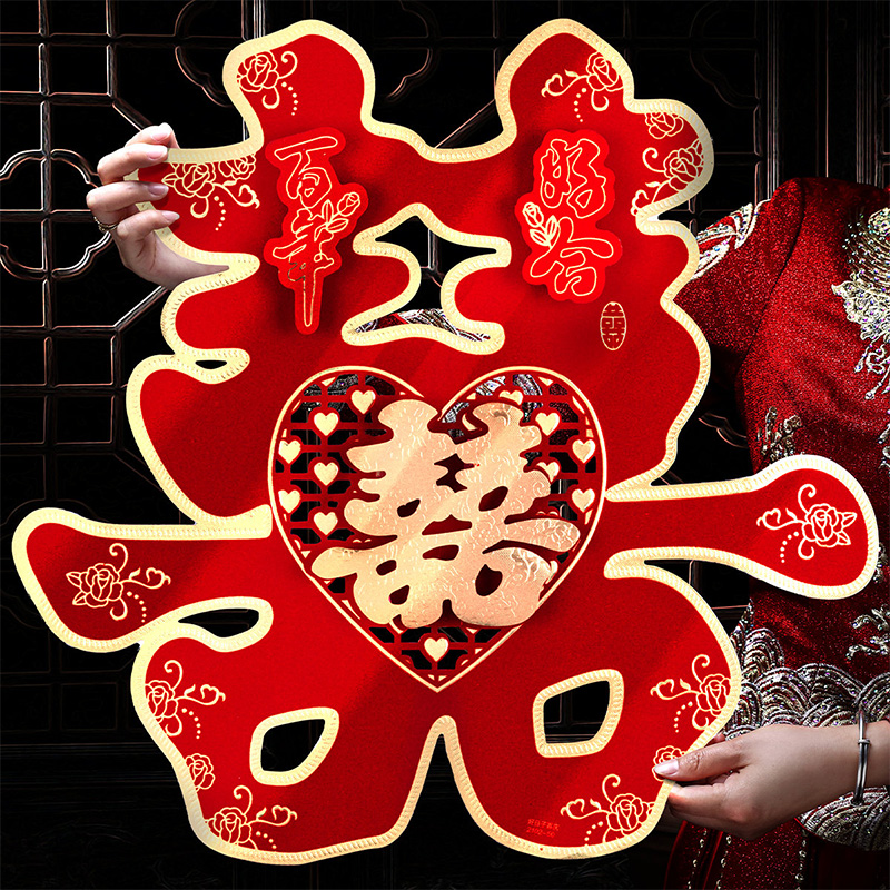 Double Joy Character Wedding Gate Happy Letdown Special Wedding House Decoration of Calligraphy Wedding Arrangement House Door Wedding with Wedding Celebration Supplies Grand-Taobao