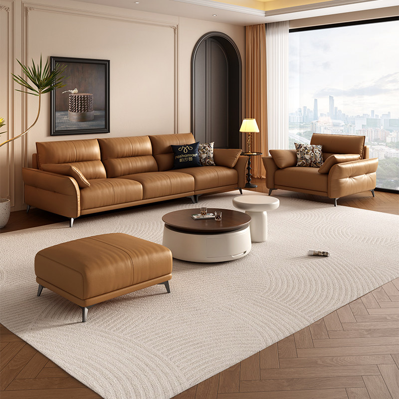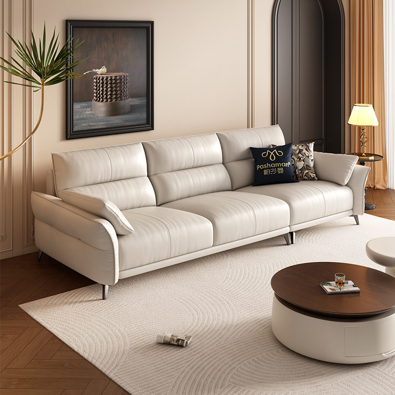 Paschaman Real Leather Sofa Head Layer Bull Leather-style minimalist living-room Small family high backrest Straight-in trio position black-Taobao