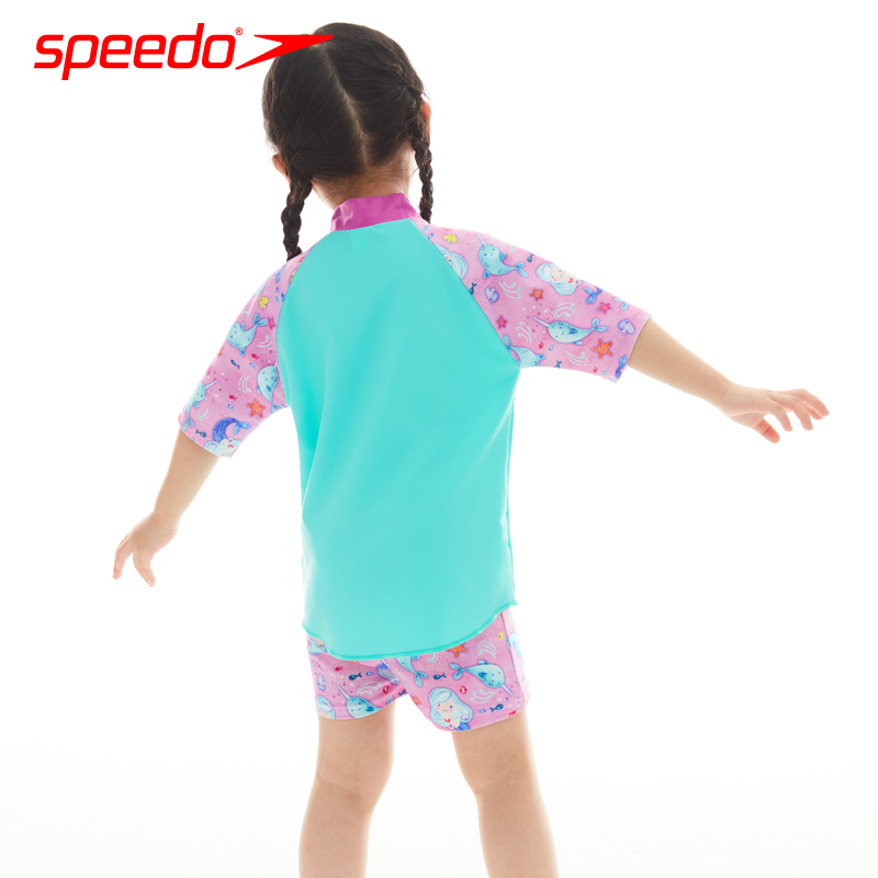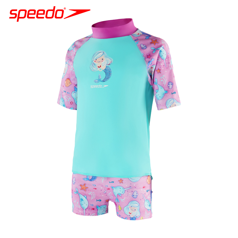 Speedo Speedo infant and toddler marine print split swimsuit set anti-chlorine swimsuit children's swimming equipment
