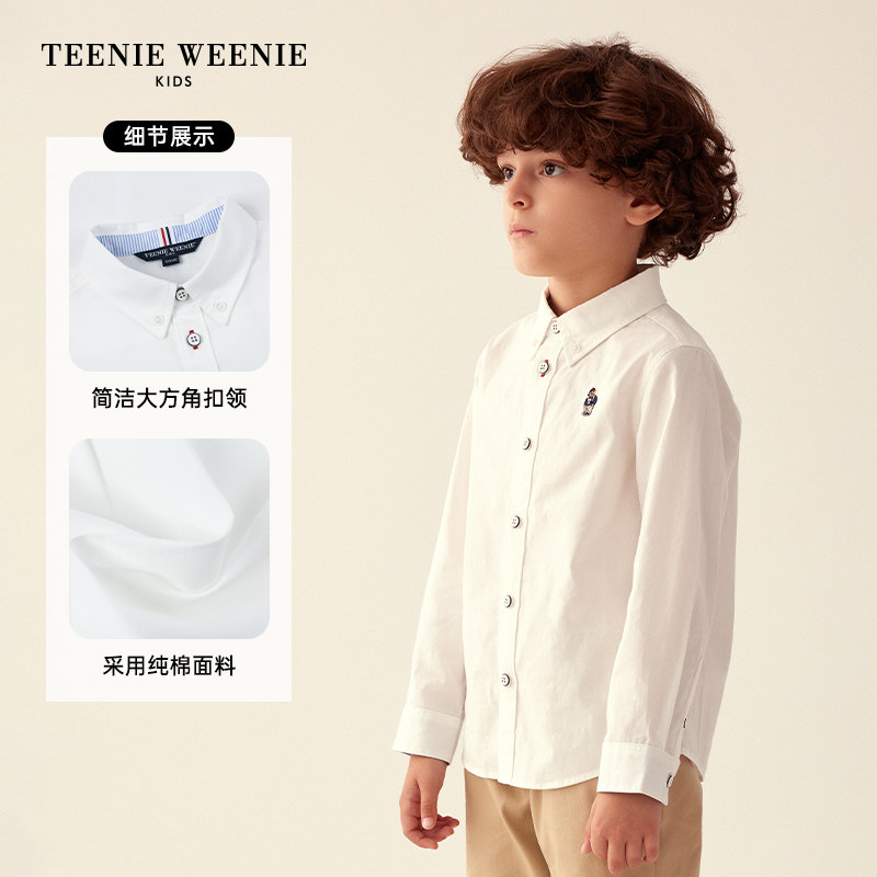 TeenieWeenie Kids small bear boy clothing boy 23 years Fall new pure cotton base with long sleeve shirt-Taobao