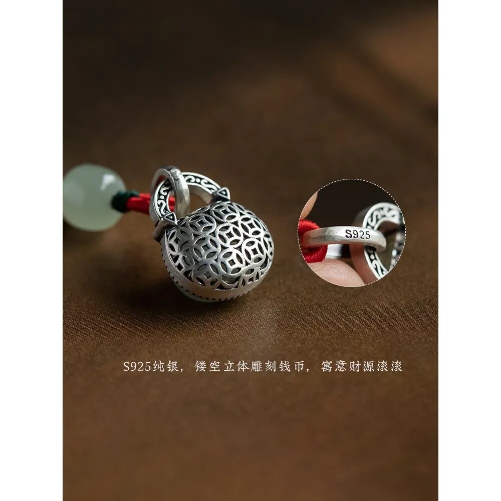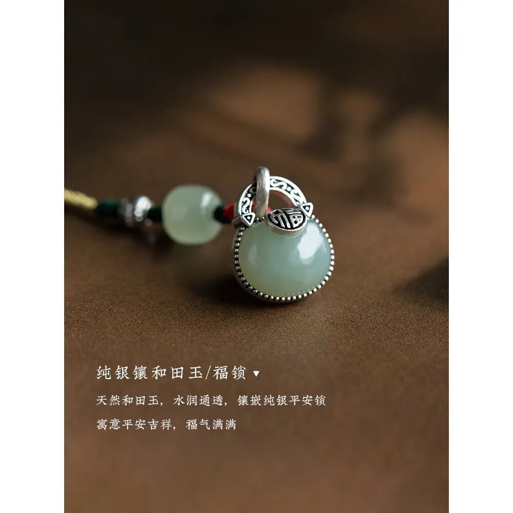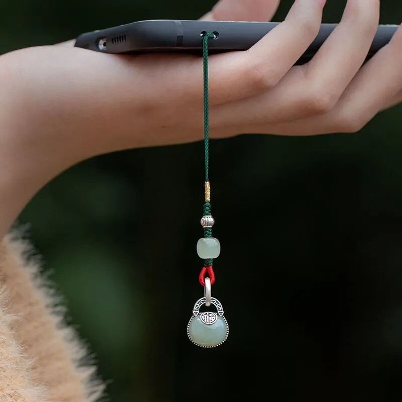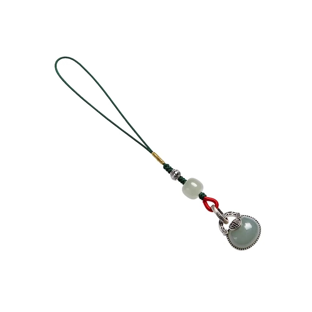 Hetian Yu Ping An Fu Ruyi lock mobile phone chain sterling silver inlaid mobile phone lanyard high-end auspicious lucky gift pendant