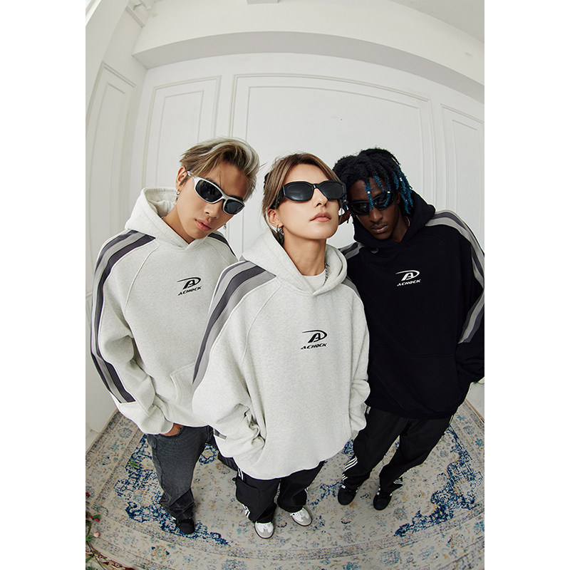 (Achock Official Shop) American Splicing Small Logo Printed with Shoulder Sleeves Hooded Couples Plus Suede Coat-Taobao