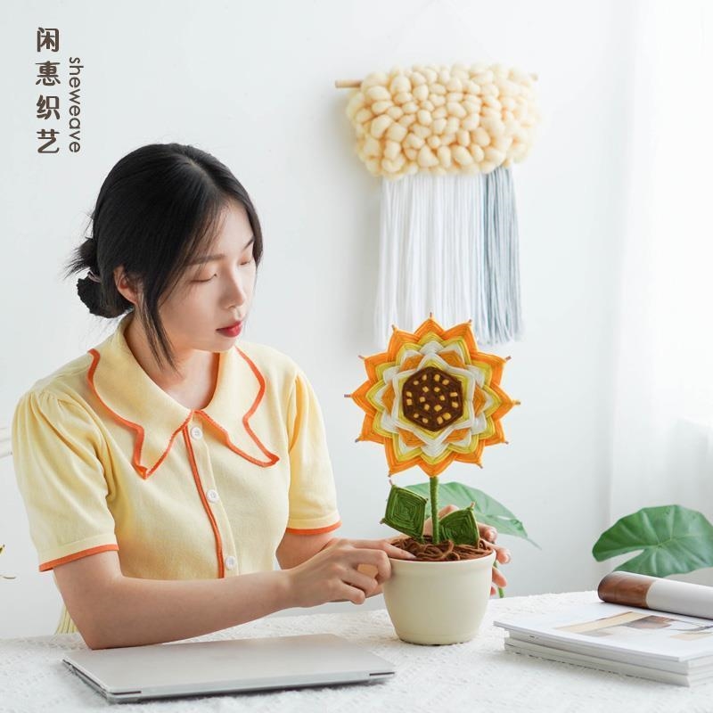 Leisure weaves sunflower pendulum piece winding mandara material bag diy demugling hand woven hair thread gift-Taobao
