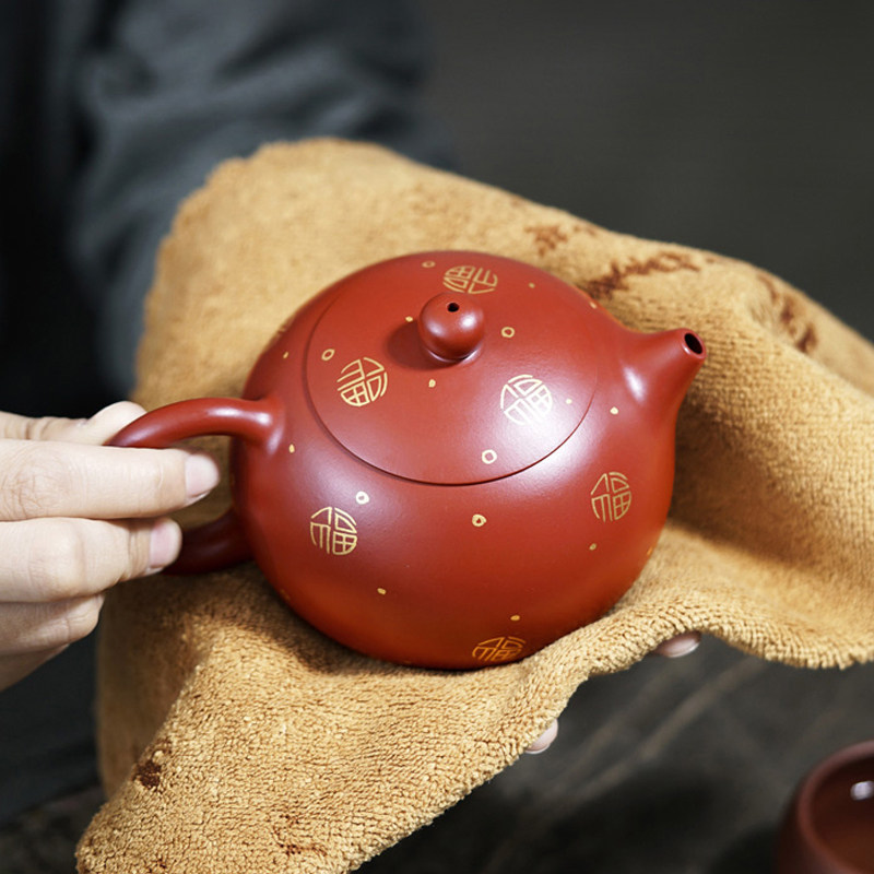 Real Force Teacher Big Red Robe Sketching Ginxi Purple Sand Teapot Single Pot Handmade Capacity 300 ml-Taobao