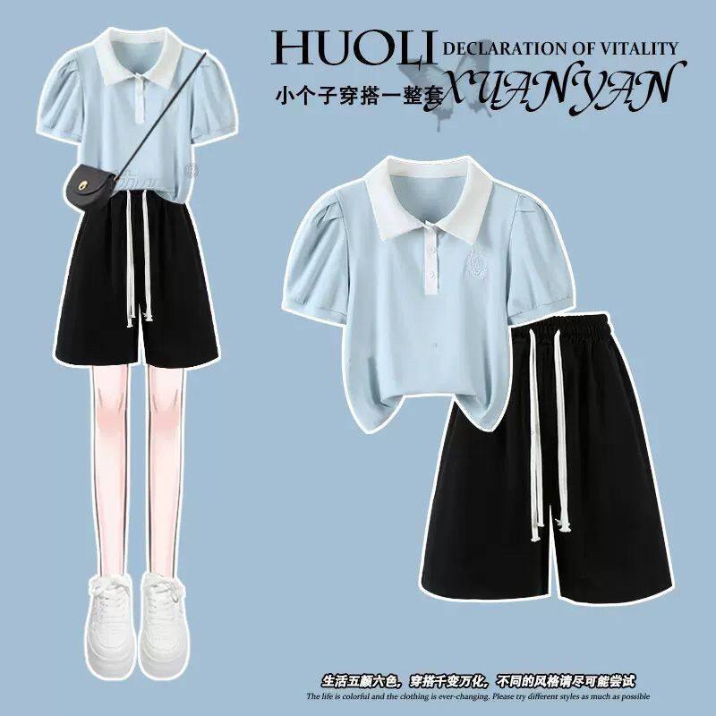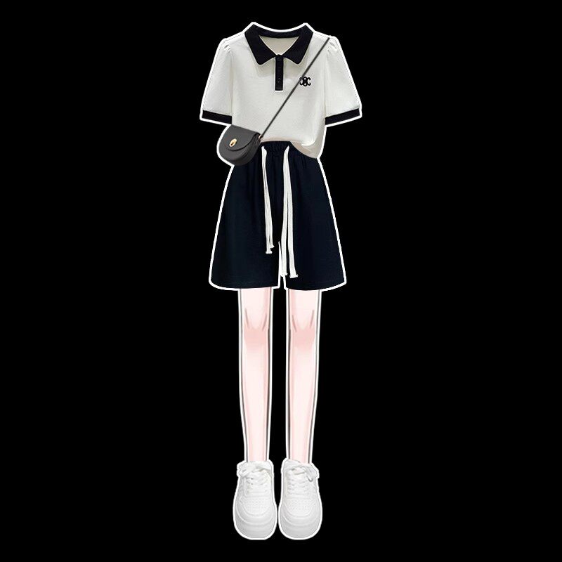 Girl Shorts Sports Suit Summer Dress 2023 New CUHK Child POLO Collar Casual Ocean Fashion Two Sets Tide-Taobao
