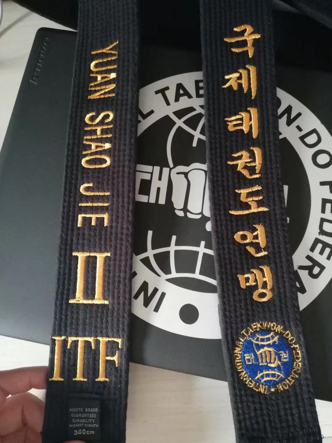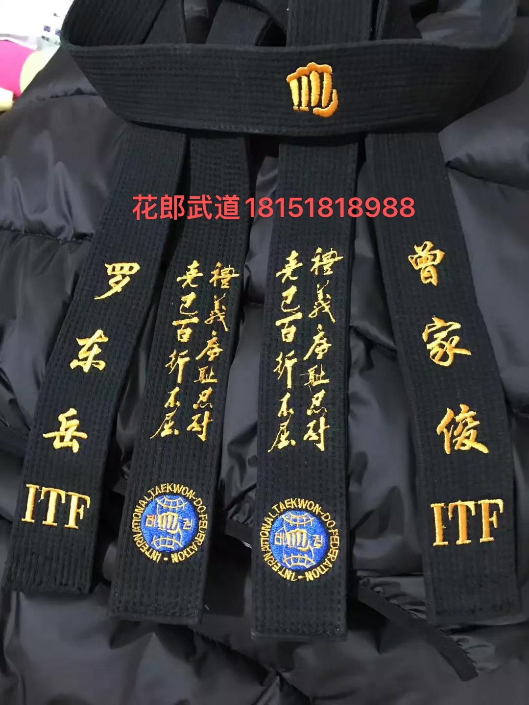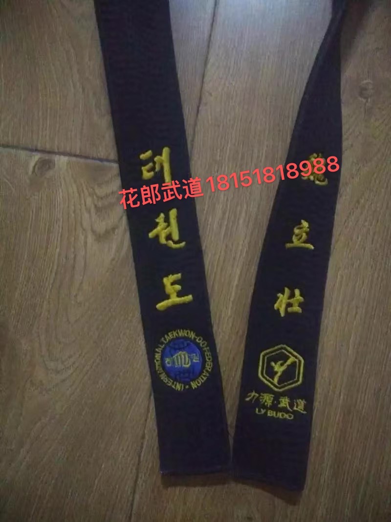 Hua Lang martial arts recommended embroidered word black belt Taekwondo spirit union emblem belt Normal standard personalized custom black belt