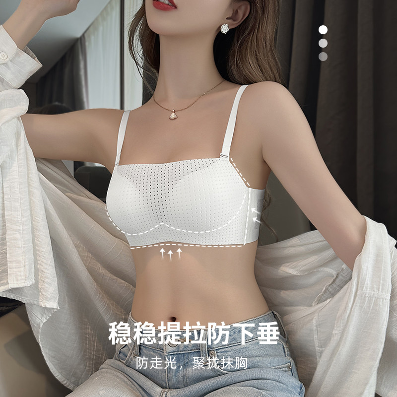 No-scratched underwear female small breasts gather without steel ring upper to anti-drooping summer white obliterator anti-walking light bra suit-Taobao