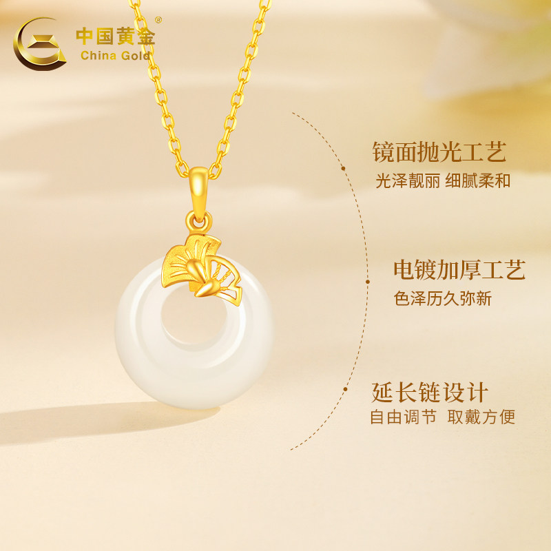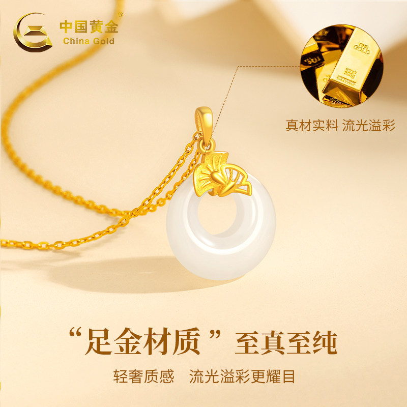 China Gold Ping An Necklace Women's Foot Gold Inlaid Jade Pendant and Tian Yui Birthday Gifts Gift to girlfriend 2576-Taobao