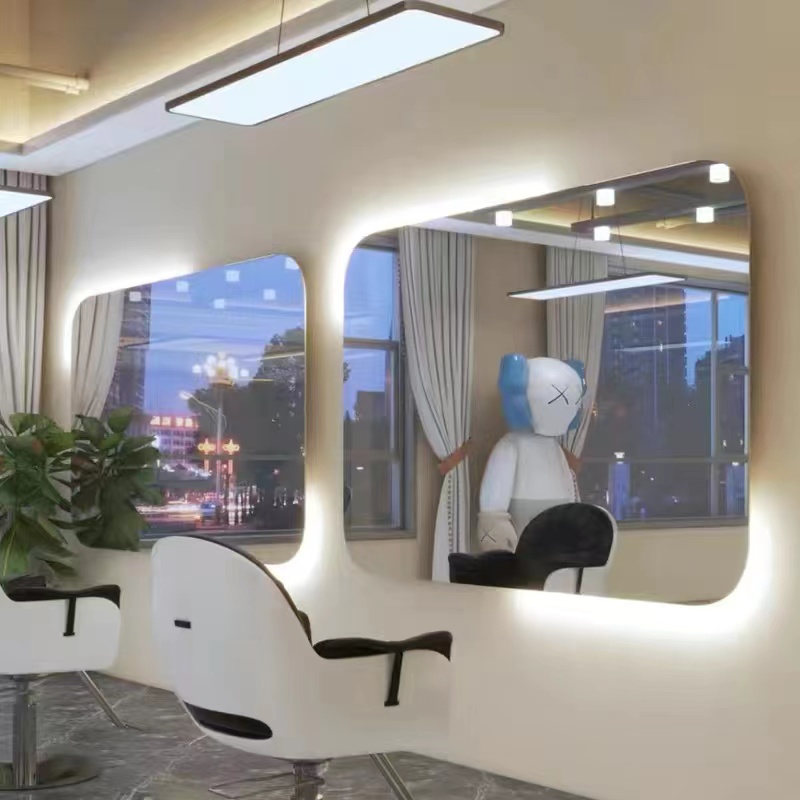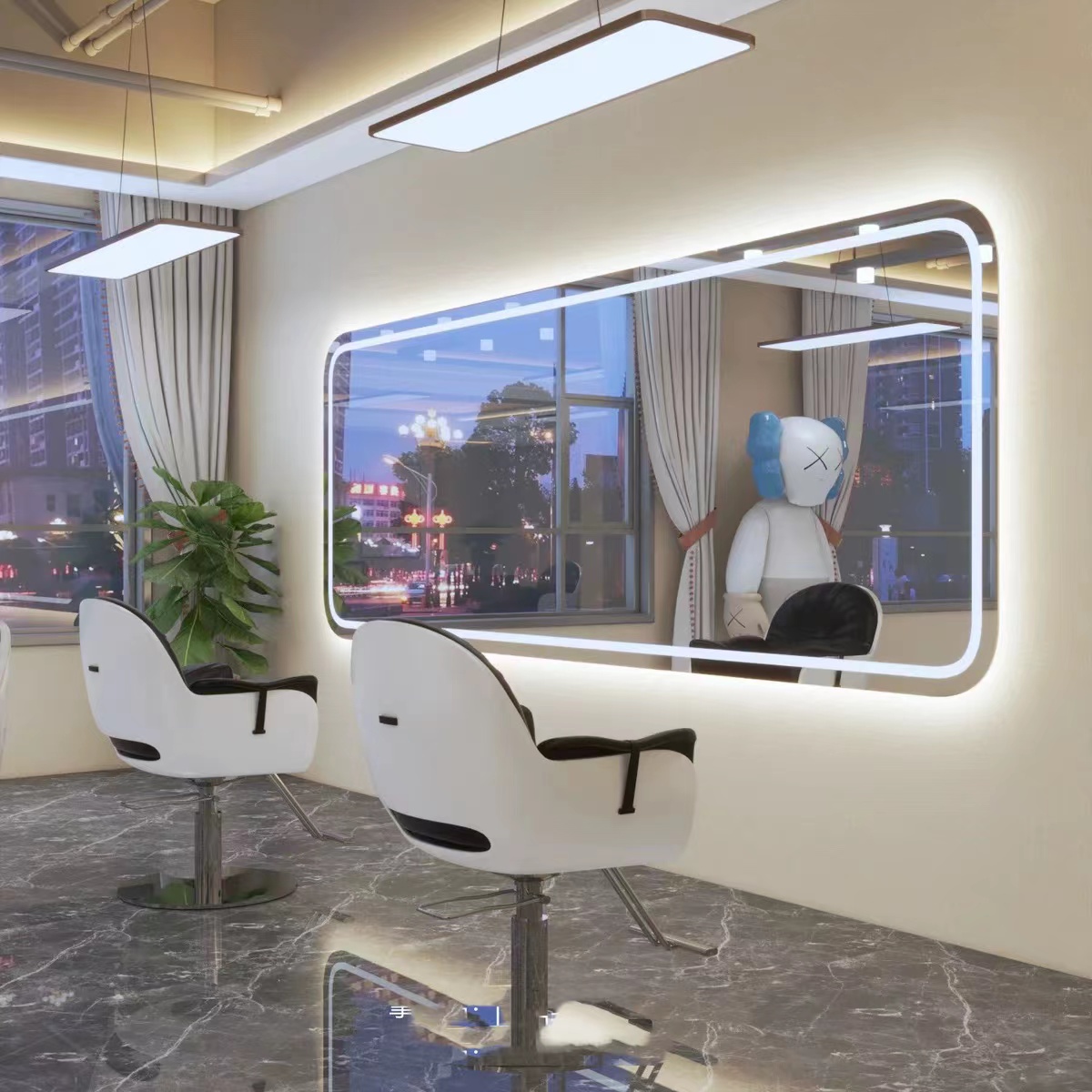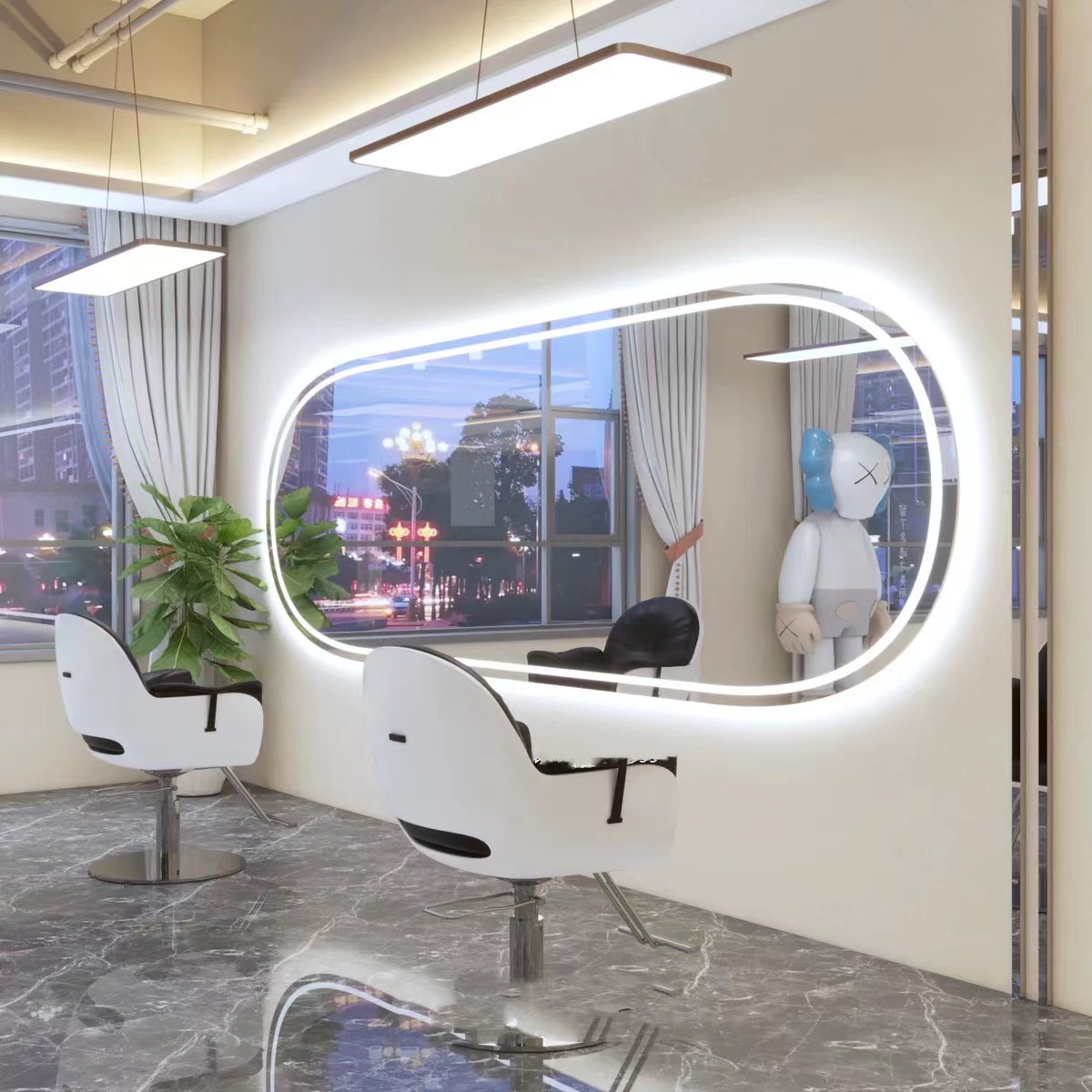 Net red hairdressingshop mirror LED with lamp hair salon special beauty hair shop hanging wall mirror table single-sided wall bronzed and haircut mirror