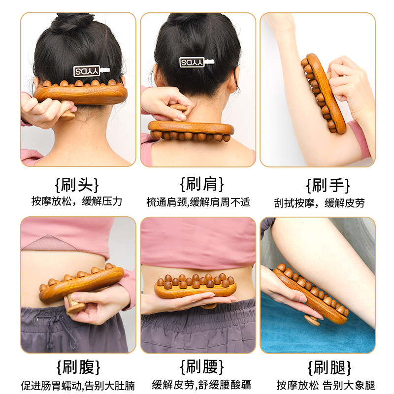 Sandalwood 16 Pearl Meridians Brush Full Body Universal Belly Small Bellied Back Scraping Knead for home Shoulder Neck Head Massage-Taobao