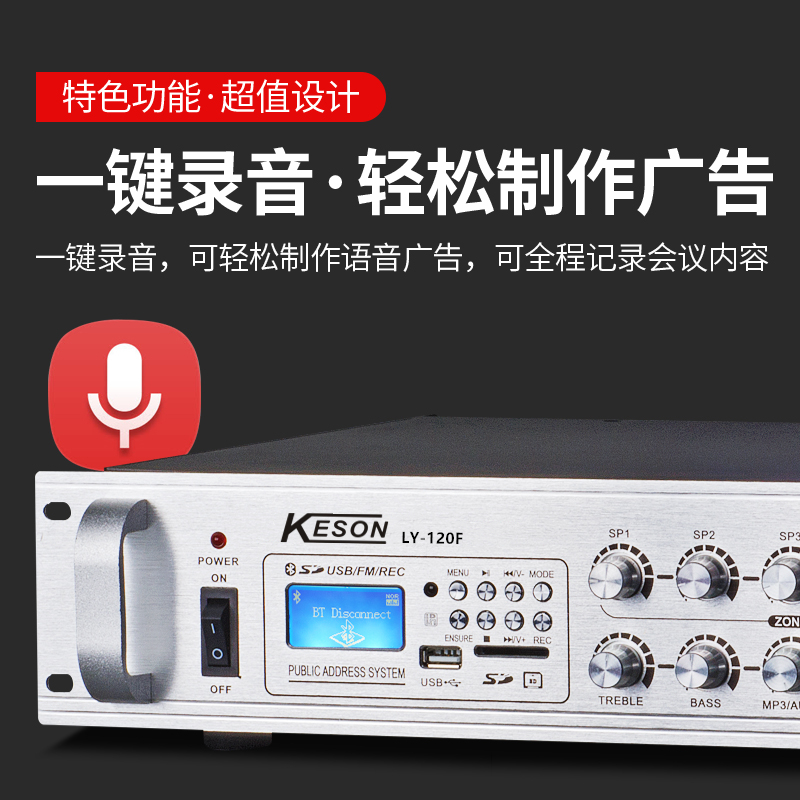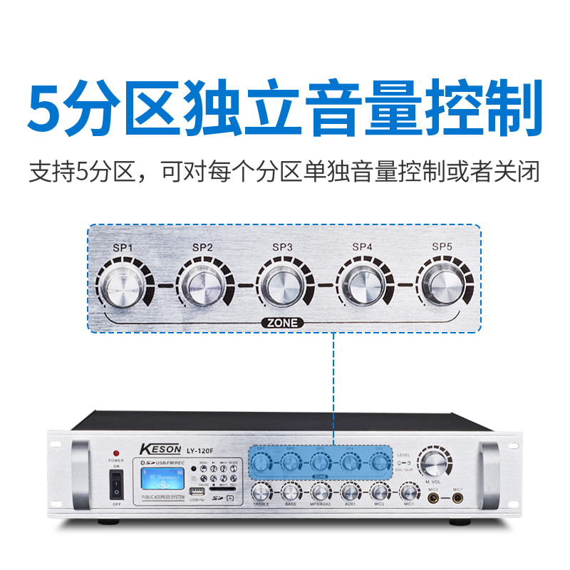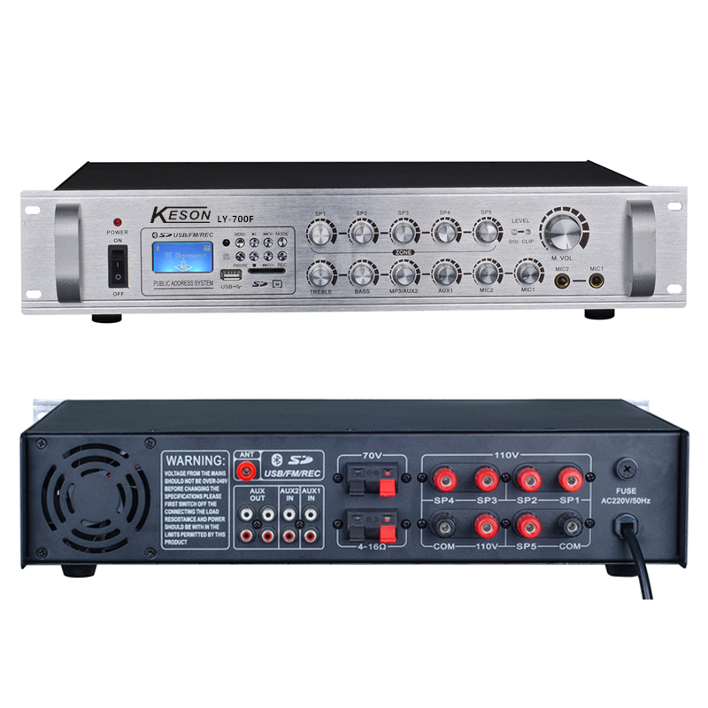 KESON Five partition volume independent adjustment control 120-700W Bluetooth constant pressure power amplifier USB sound recording FM radio