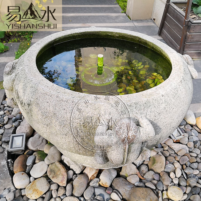 Stone Carving Stone Fish Tank Round Vat Natural Stone Golden Toad Money Toad Property Courtyard Door Sea Swing Piece Large Stone Vat Planting Fish-Taobao