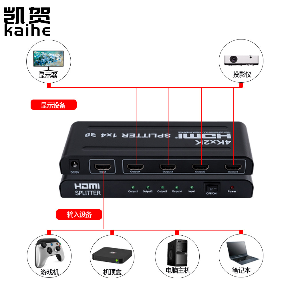 HDMI dispenser 1 in 4 out of branch line instrumental 1 minute 2 4 8 16 HD 4k Computer monitoring video recorder projector Sub-screen with audio TV selling field One drag in 2-four 8-sixteen T