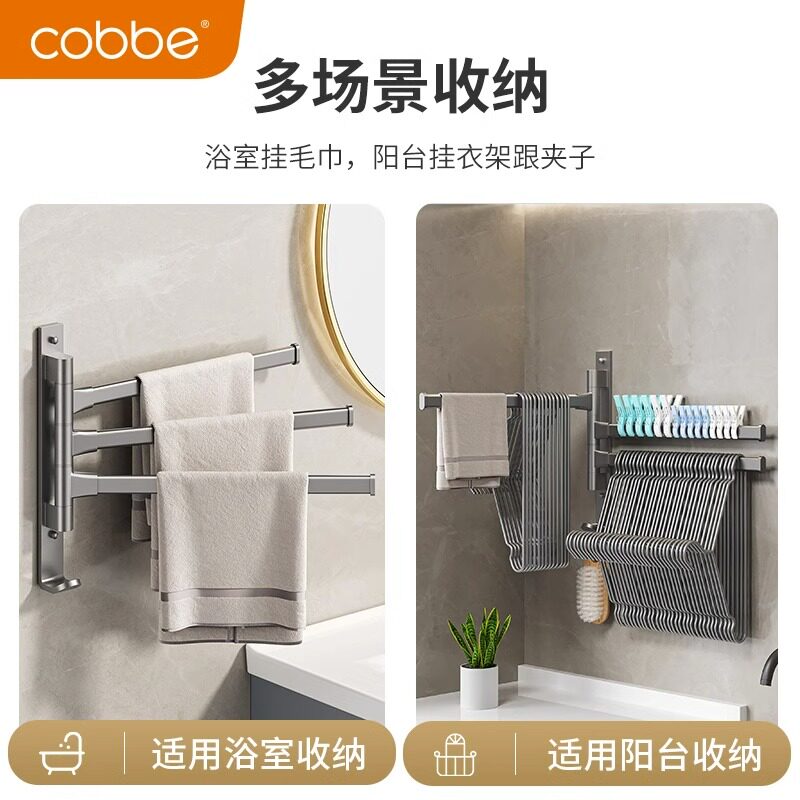 Cabbé Rotating Towel Rack Bathroom Free of perforated Multipole Contained Space Aluminum Toilet Wall-mounted Fur Towel Rack-Taobao