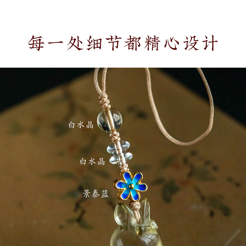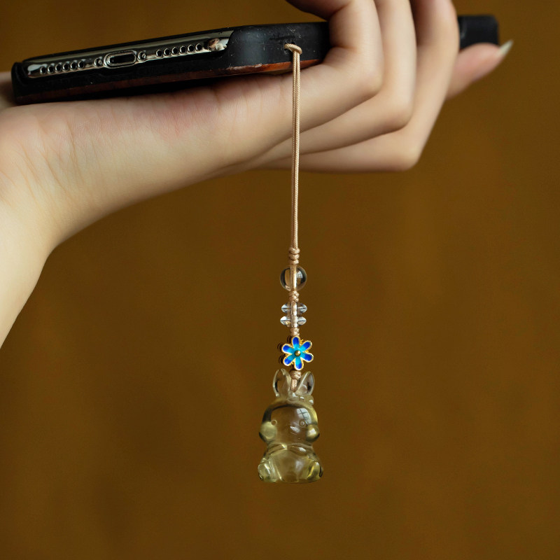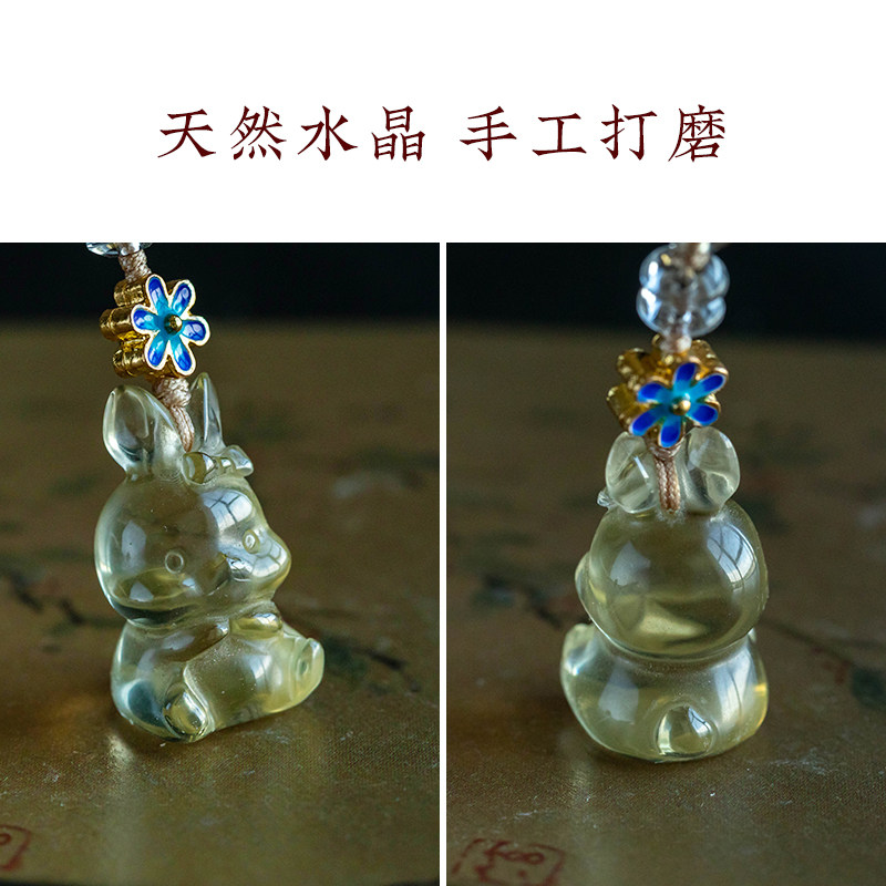 Natural citrine bunny mobile phone chain pendant cute and exquisite hand-woven original high-end key chain decoration ceremony