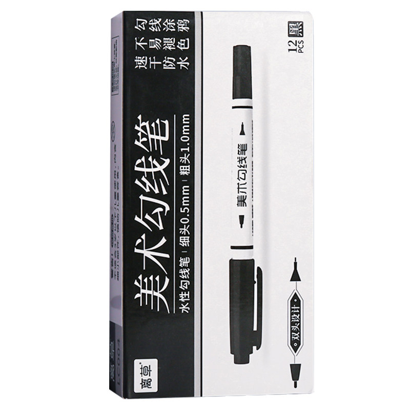 Water-based -3 black double head fine art hooking pen ⭐waterborne water washable oily waterproof without fainting⭐ waterborne -12 black boxed (upgraded plus 30%) oily -5 IAF