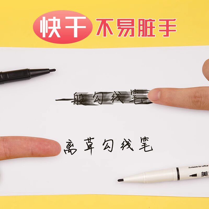 Water-based Tick Pen Black Small Double Heads Mark Pen Fine Art Exclusive Elementary School Children Safety Non-toxic Drawing Painting Kindergarten Oily Pen Fine Head Speed Dry Without Dropping Color Sketching Pen Hook Pen-Taobao