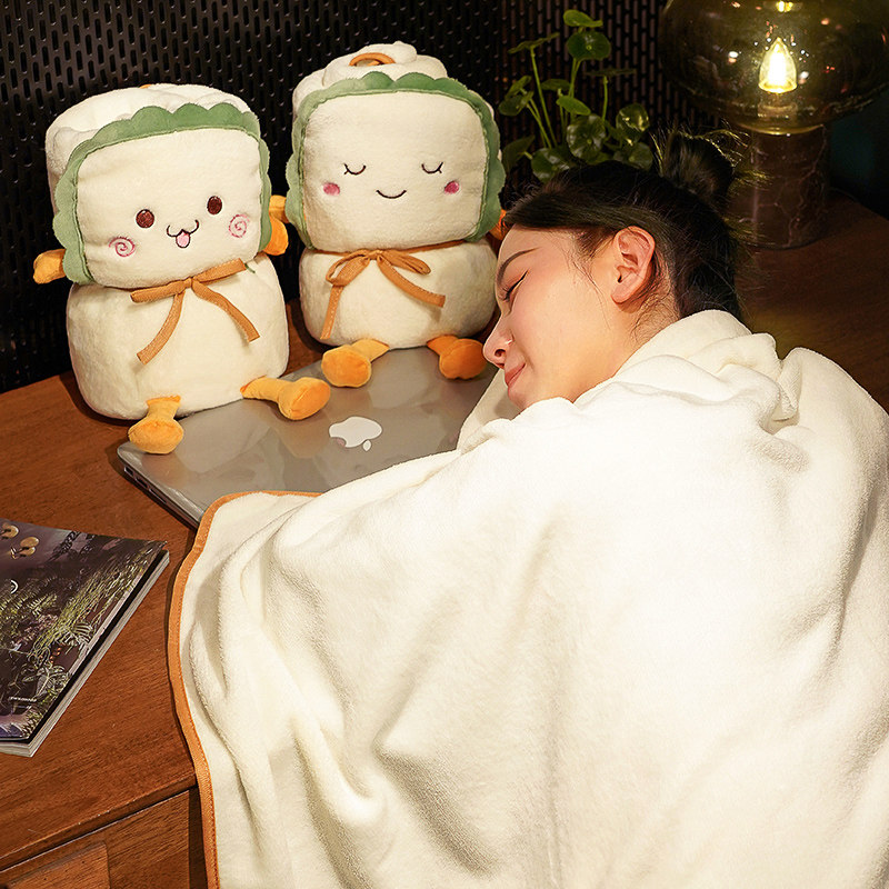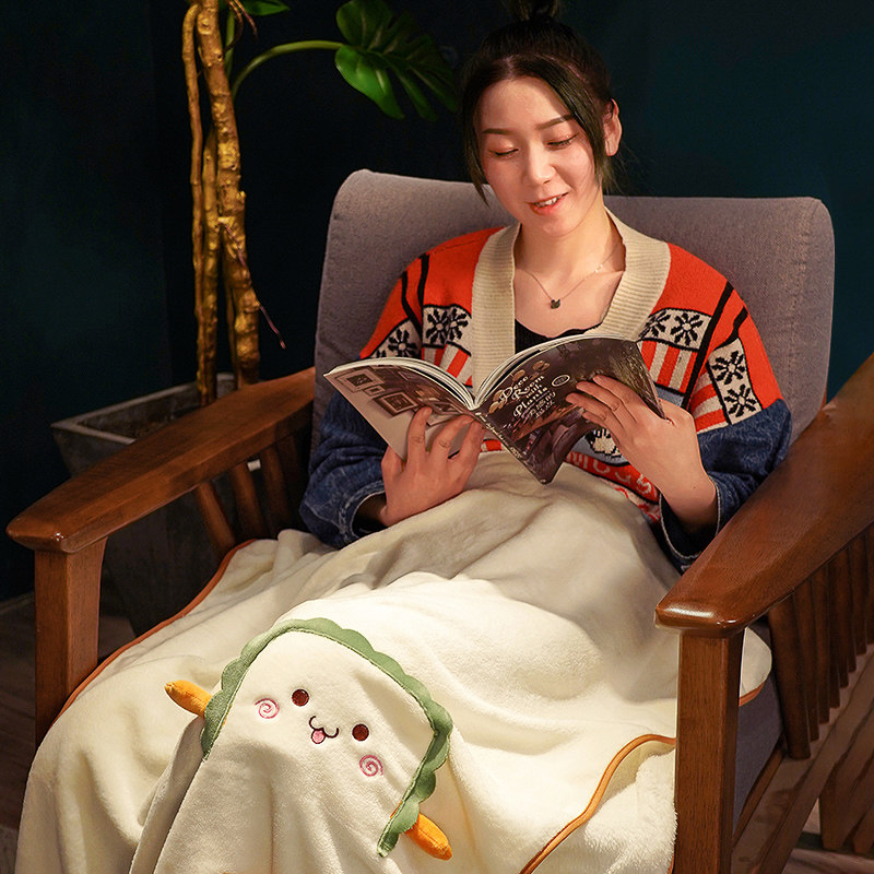 Holding Pillow Quilt Double Duty Lunch Break Office Afternoon Nap Air Conditioning Blanket Children Coral Suede Small Hair Blanket On-board Car With-Taobao