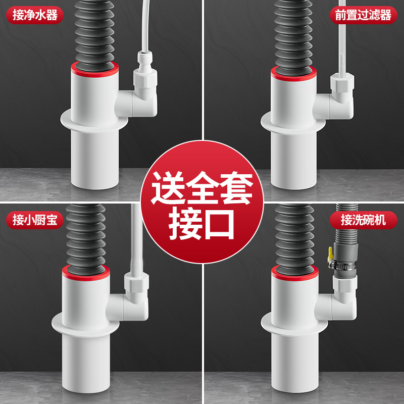 Kitchen Downpipe Three Heads Pass Wash Vegetable Basin Sink Sewer Drain Pipe Drain Anti-Smells Multifunctional Joints-Taobao
