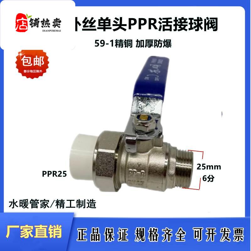 Su Ming copper ball core inner and outer wire PPR copper ball valve live connection valve tap water switch ball valve PPR20*4 points outer wire