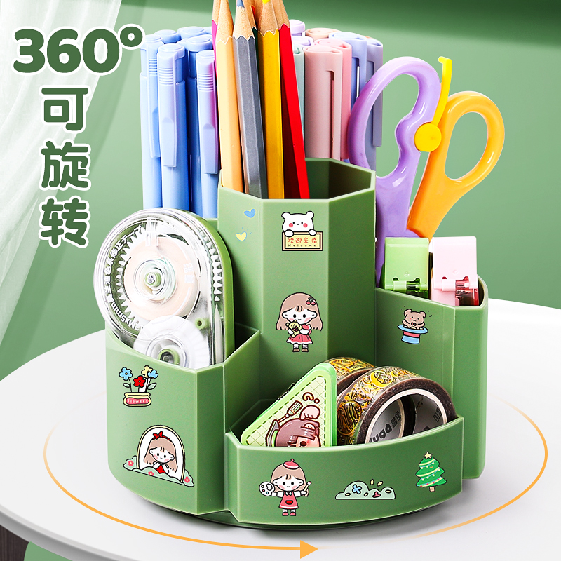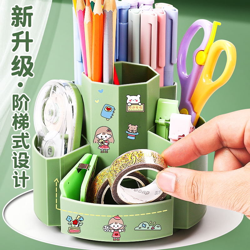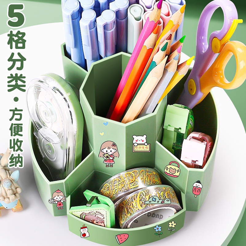 360 Degrees Large Capacity Rotating Pen Holder Creativity versatile dress pen Containing Box Children Cute Minima Elementary School Kids Desktop Stationery Pen Boxes Ins Fashion Girl Boy Office Desk Pen Holder-Taobao
