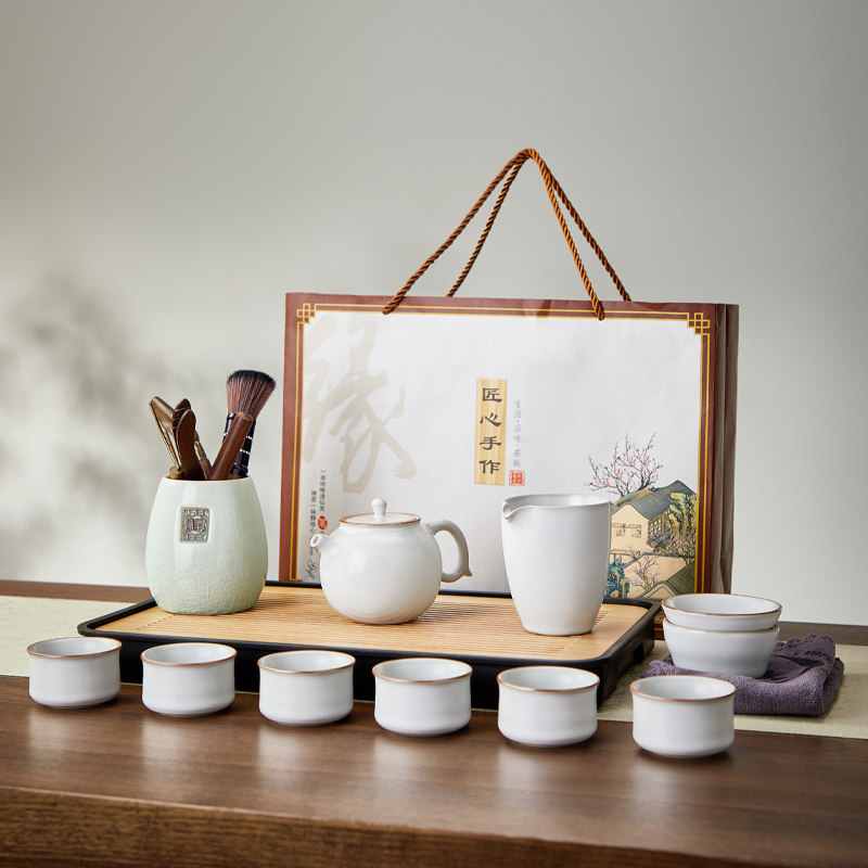 Wind instrument tea set 9 pieces of Yayee tea set 9 pieces of tea set (recommended) wind instrument 9 pieces of tea tray (send tea towels to raise a pot pen) Ru kiln tea set 9 pieces of 6 Gentleman Ru Kiln Tea Set 9 pieces of 6 Jun