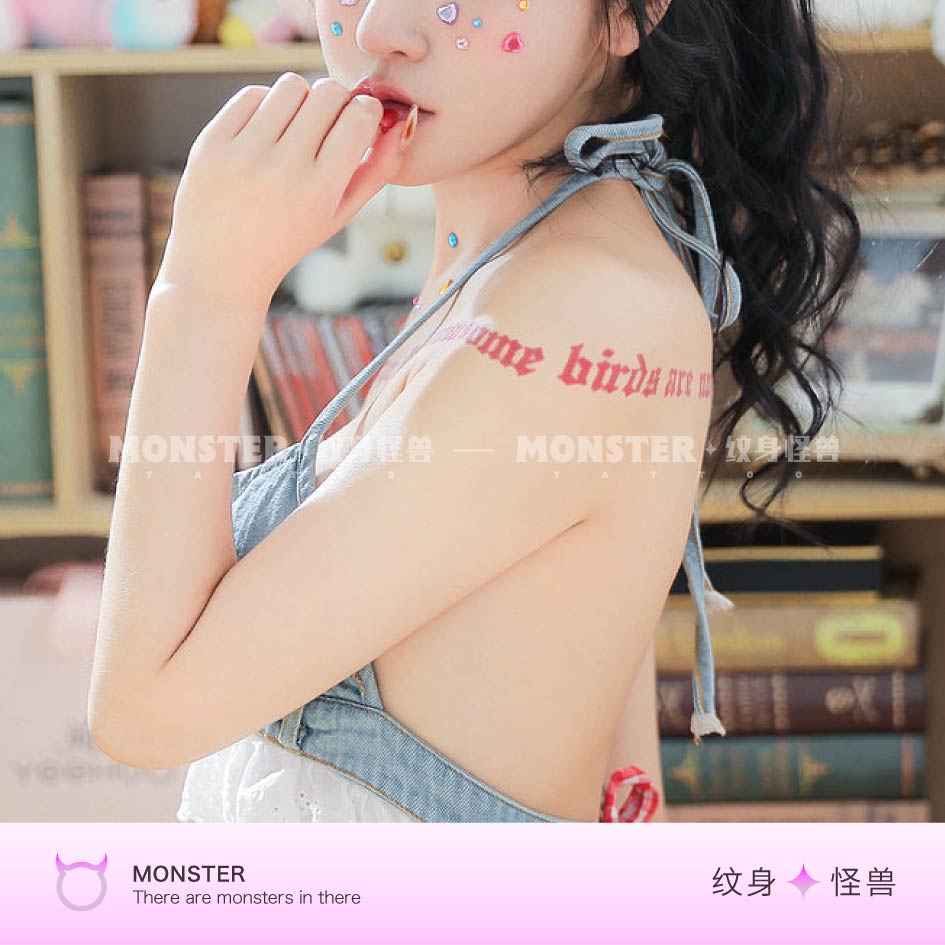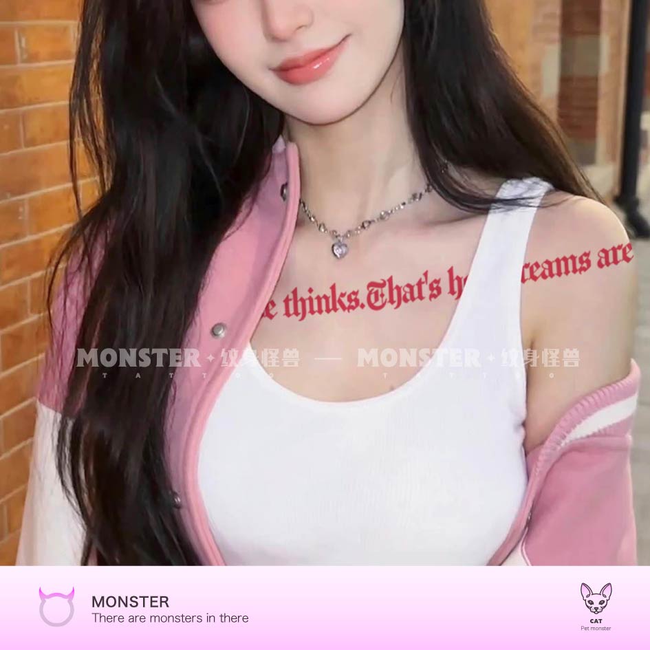 Tattoo Monster red English letter tattooed with waterproof female persistent collarbone advanced sensals ruffles and cues-Taobao