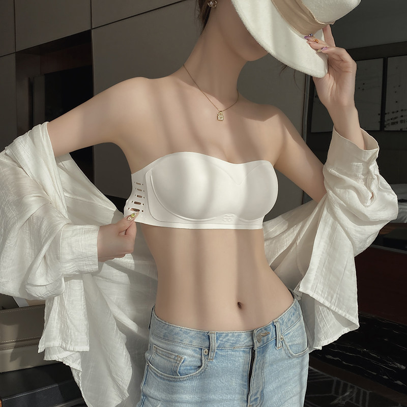 No shoulder strap lingerie female small breasts coaling to display large no steel ring to receive the new white wrapped bra bra hood-Taobao