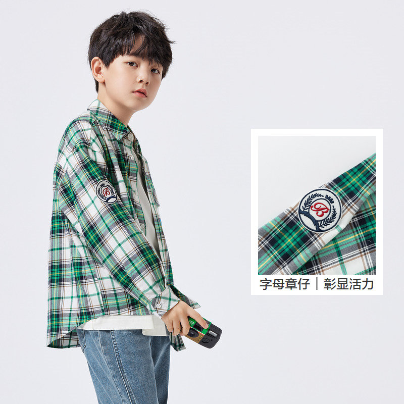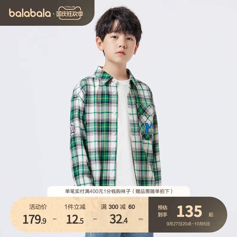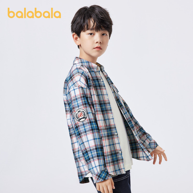 (Mall same section) Balabala boy shirt child shirt long sleeve autumn CUHK children's clothing plaid retro-Taobao