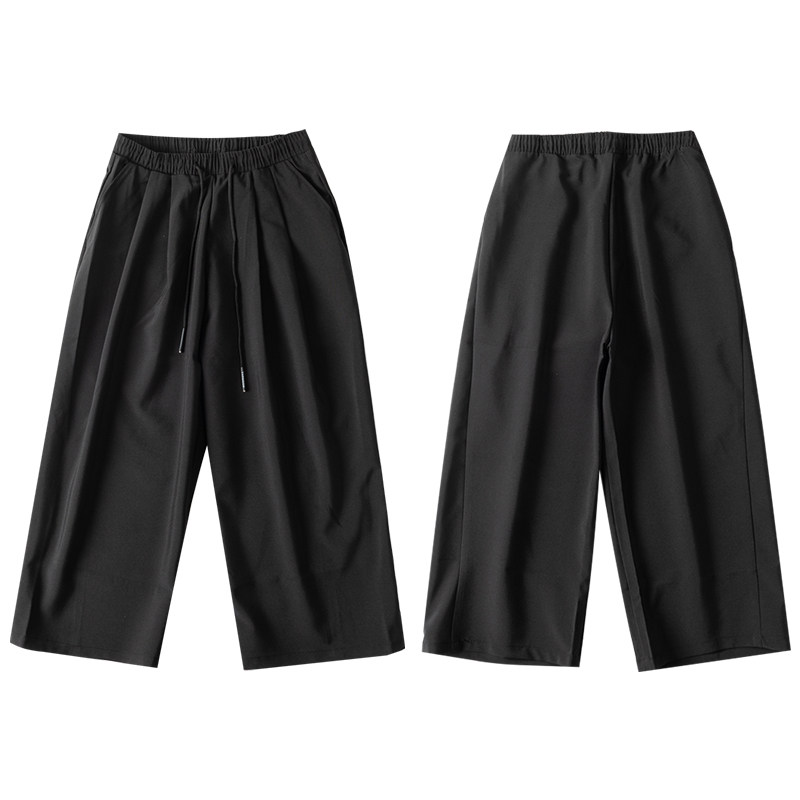 Summer heavy lbs pure color casual Western clothing Pants Loose Straight Barrel Feel 100 lap 90% Pants Men and women Pumping Rope Broadlegged Pants-Taobao
