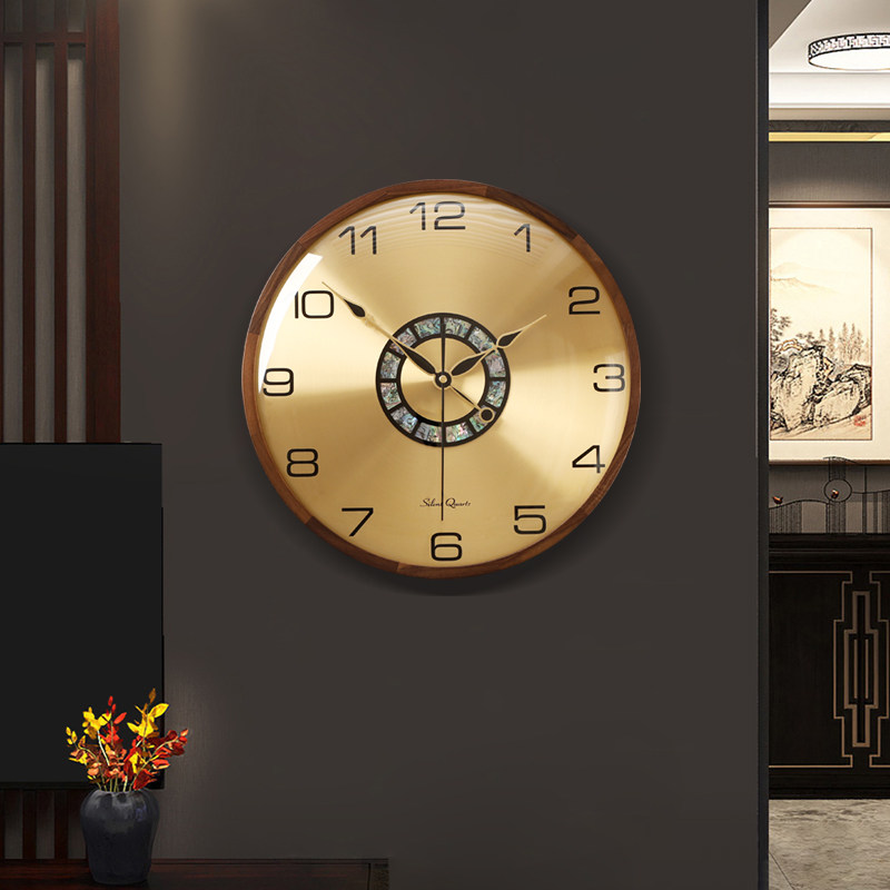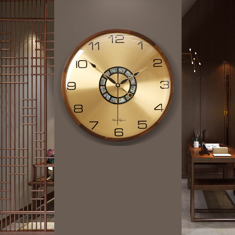New Chinese hanging clock living room clock home 2023 new creative decoration hanging wall clock solid wood muted quartz clock-Taobao