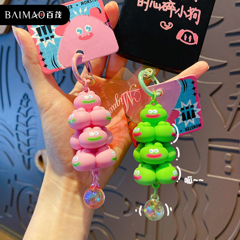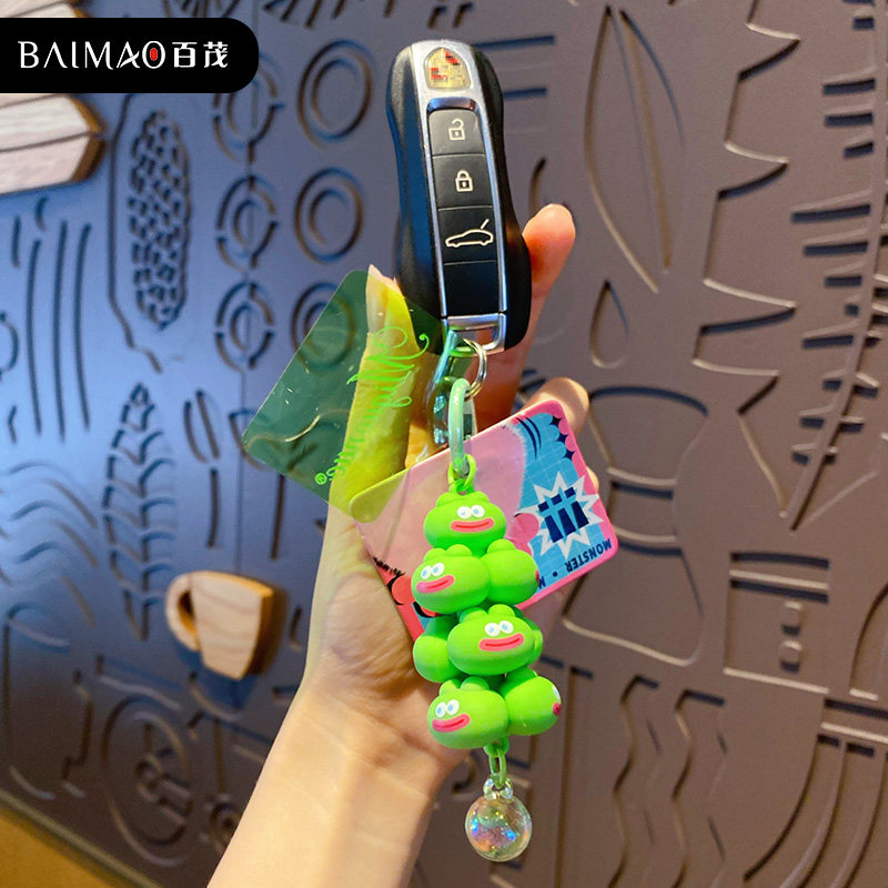 Net red ugly cute big mouth frog laminated Leg button key button Delicate Woman Car Key Pendant bag hanging decoration Key chain-Taobao