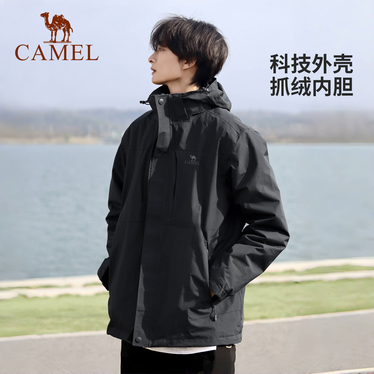 Camel Outdoor Rain God Jacket Men's Three-in-One Velvet Thickened Jacket Women's Heavy Rain Windproof and Waterproof Mountaineering Jacket Winter