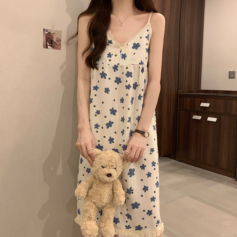 Harness Chest Cushion Sleepwear Women's Summer 2023 New Sweet teenage girl Sleeping dress for long summer sleeveless home dress-Taobao