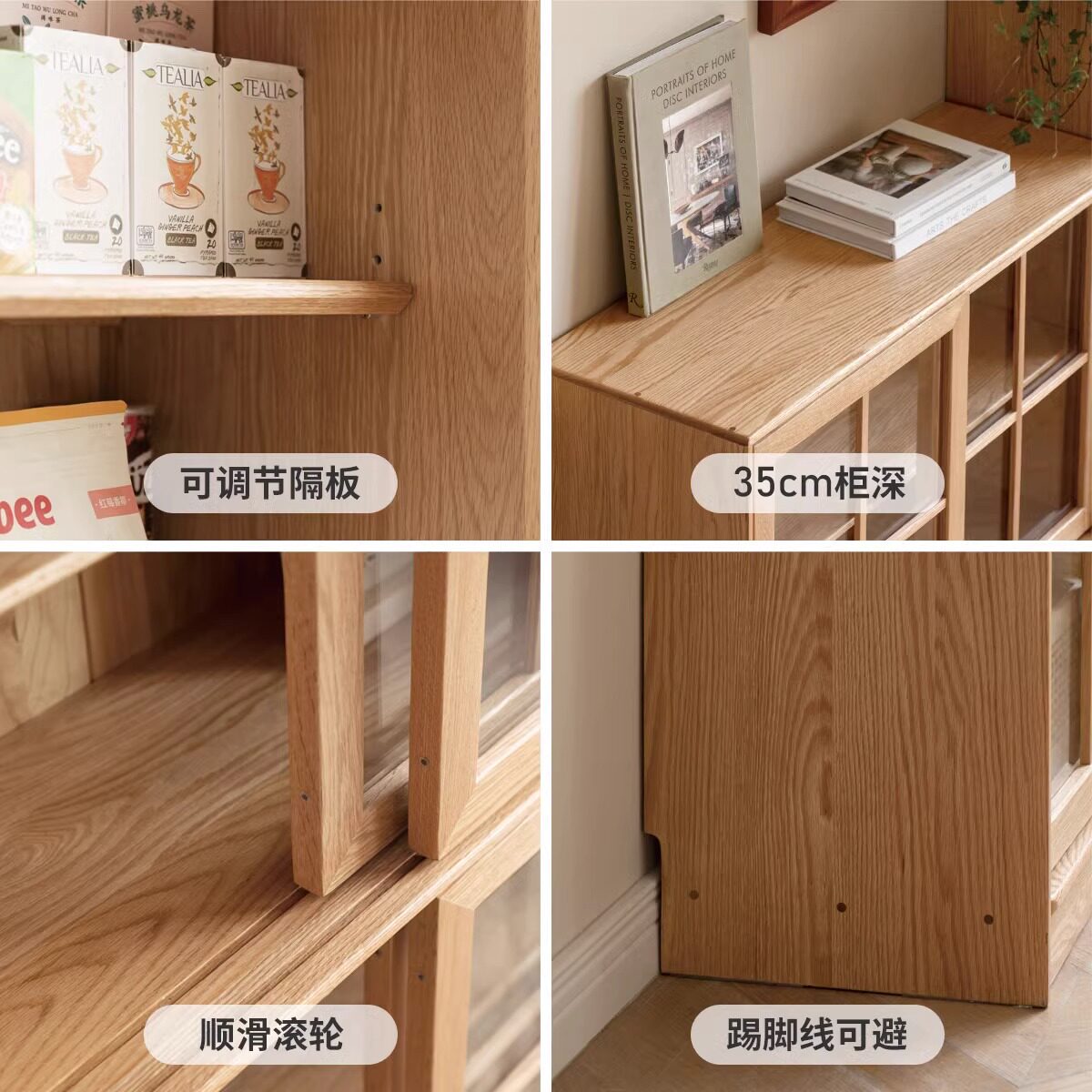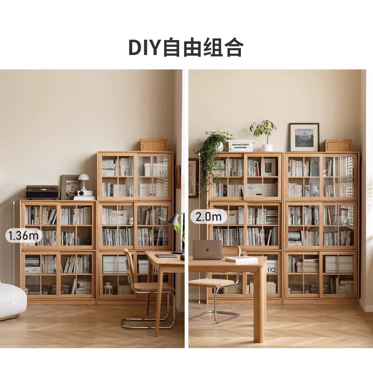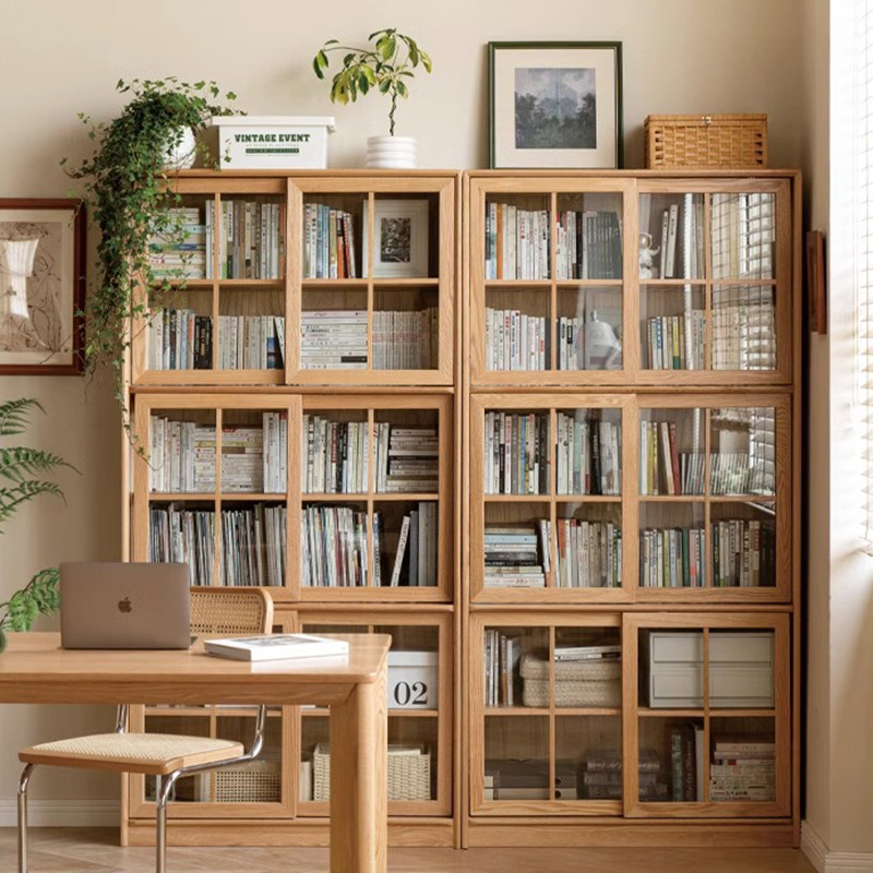 Small Seven Wood Pure Solid Wood Bookcase Floor Free Combined Bookshelves Mobile Door Display Cabinet Leaning Against Wall Pushdoor Bookcase-Taobao