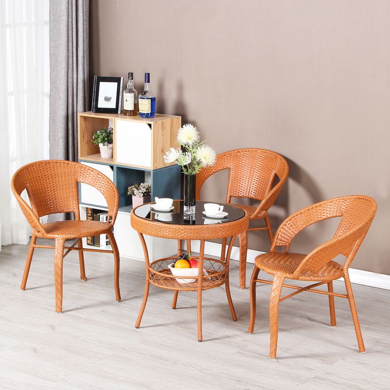 Balcony Table And Table Cane Chair Three Sets Combination Simple Chair Outdoor Casual Double Small Tea Table Balcony Casual Table and chairs-Taobao